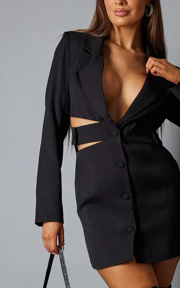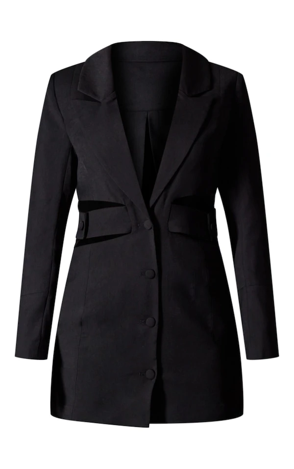 Label PLT Robe blazer tissée noire à découpes et boutons