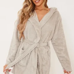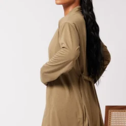 Label PLT Robe de chambre texturée café au lait à nouer sur la taille