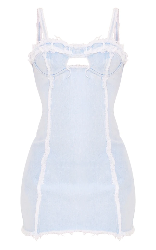 Mini robe en jean bleu clair délavé à détail bonnet et ourlet élimé