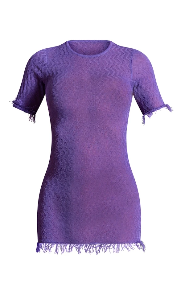Mini robe en maille tricot transparente violette à ourlet effiloché