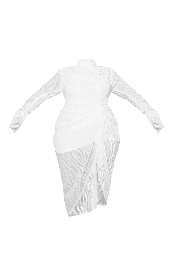 Plus Robe mi-longue blanche imprimé zèbre dévoré à col haut et détail drapé