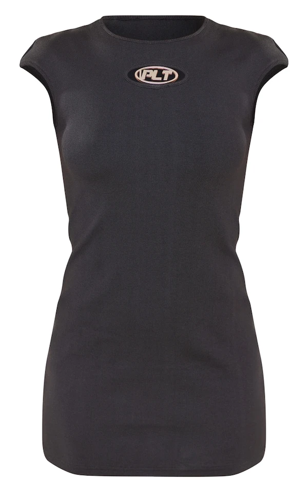 PRETTYLITTLETHING Robe moulante côtelée noire à empiècement
