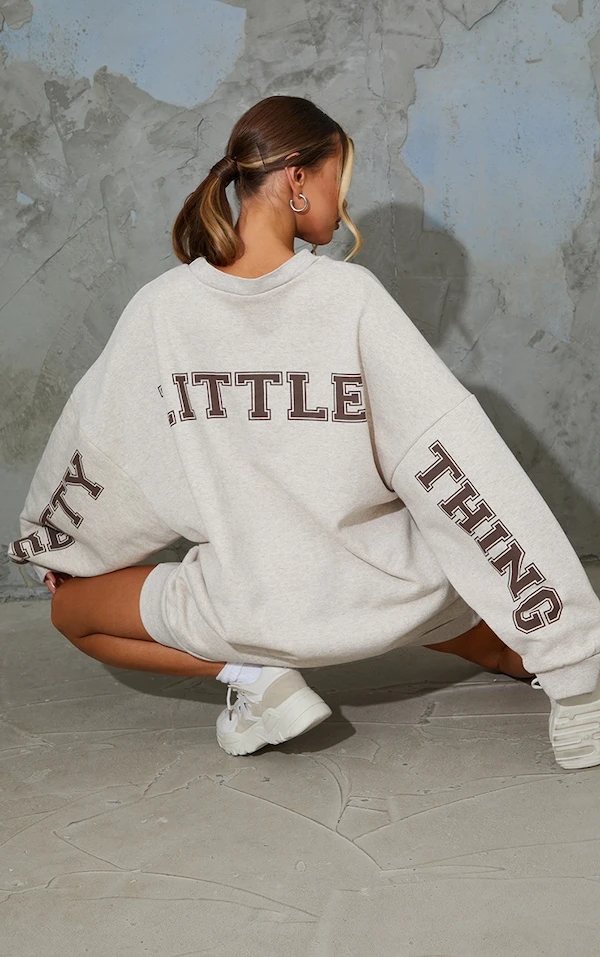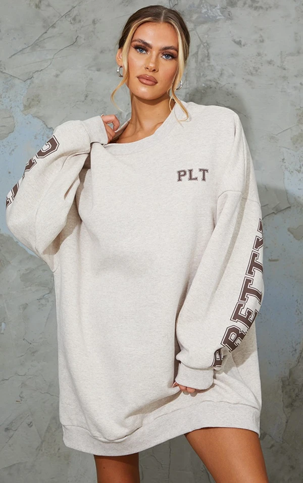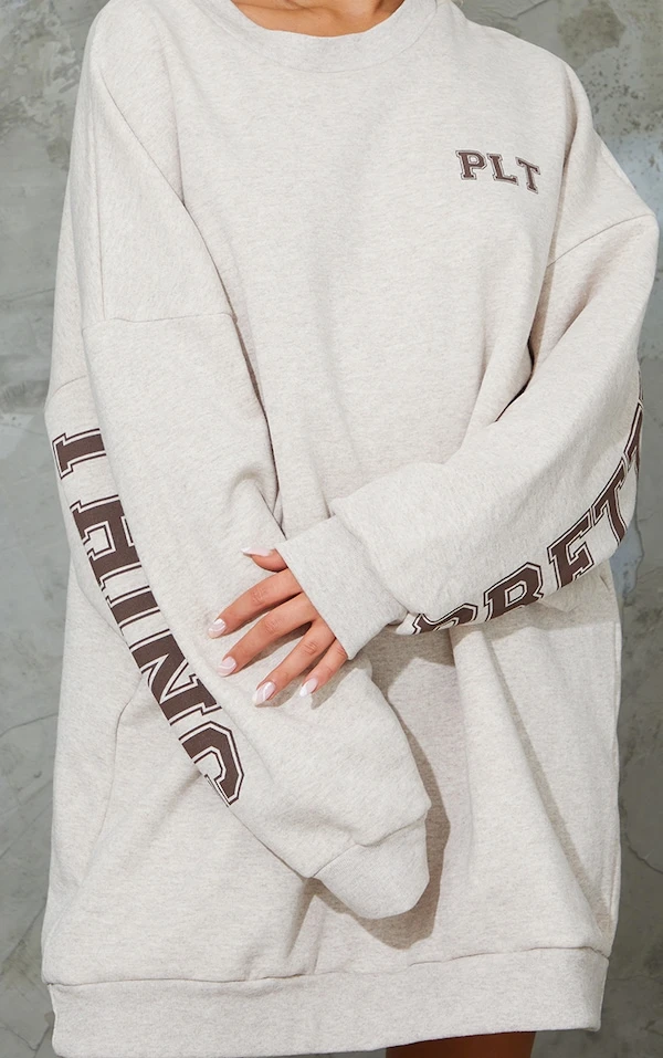 PRETTYLITTLETHING Robe sweat oversize avoine à slogan