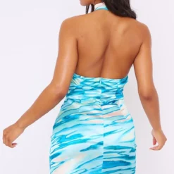 Robe Droite Satinée Bleue à Armatures Et Bretelles Dans Le Dos