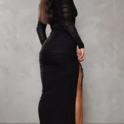 Robe Longue En Maille Côtelée Structurée Noire à Contours Et Dos Nu Arrondi