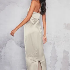 Robe Longue Satinée Nude à Bretelles Croisées Et Découpes