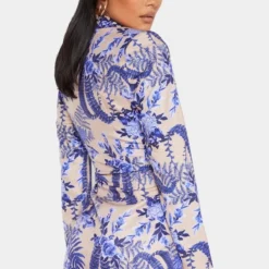 Robe Blazer Bleu Marine Froncée Et Découpée Dans Le Dos à Rayures Et Double Boutonnière