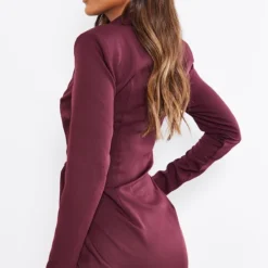 Robe Blazer Chocolat à Double Boutonnière Et Manches Flûtes