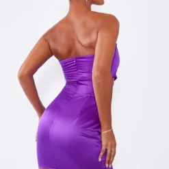 Robe Moulante Bustier Satinée Rose Vif à Bretelle Dans Le Dos