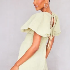 Robe Moulante Pistache Ă Corset Armatures Et Manches Bouffantes