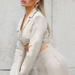 Robe Moulante Style Blazer Utilitaire Gris Pierre En Maille Tissée à Découpes Et Taille Nouée