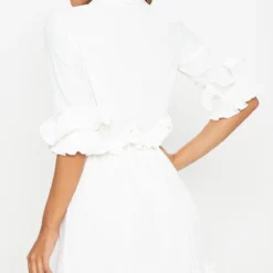 Robe Moulante Volantée Blanche En Mousseline De Soie à Bonnets Plissés