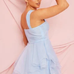 Robe Patineuse Bleu Minéral En Organza à Bretelles épaisses Et Superpositions
