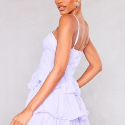 Robe Moulante Volantée Lilas En Mousseline De Soie à Bonnets Plissés