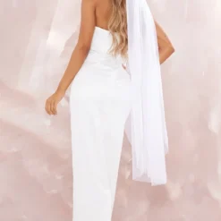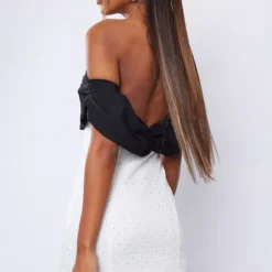 Robe Bustier Moulante Blanche à Col Bardot Et Jupe Strassée