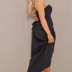 Robe Bustier Mi-longue En Maille Noire Ă Barre En V Et Fronces