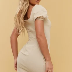 Mini Robe Dos Nu En Jean Marron Clair à Ceinture Tressée Et Jupe Plissée