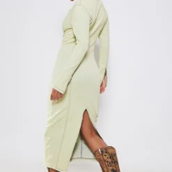 Robe Moulante Dos Nu En Similicuir Kaki Foncé à Détail Bonnets