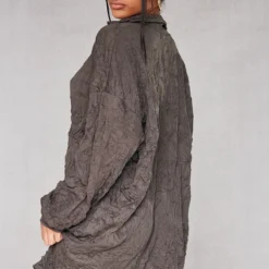 Robe Asymétrique Longue Plissée Marron Imprimé Dégradé à Dos échancré