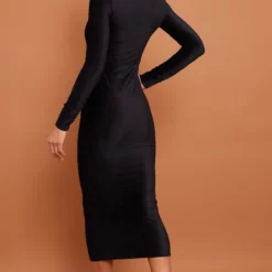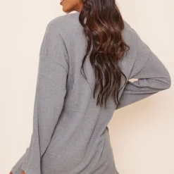 Robe Longue En Jersey Gris Anthracite à Manches évasées Et Détail Contours