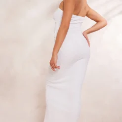 Robe Longue Découpée Blanche En Maille Texturée Contrastante