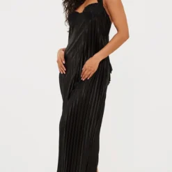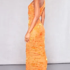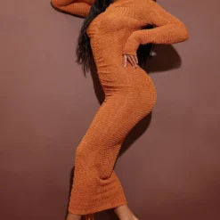 Robe Longue Texturée Orange Métalisée à Lanières Croisées Dans Le Dos