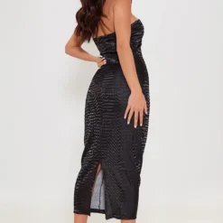Robe Moulante Détail Corset Noire En Bandage à Bretelles Et Armatures