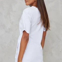 Robe T-shirt Portefeuille Blanche En Coton Ă Manches Courtes