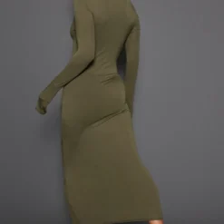 Robe Mi-longue Vert Sauge Kaki En Jersey Ă Noeud Sous Le Buste