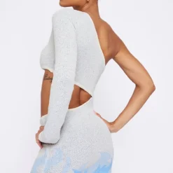 Robe Moulante En Maille éponge Bleu Ciel à Flamme Et épaule Unique