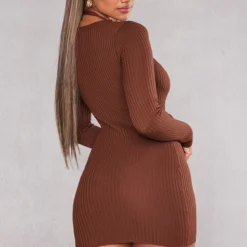 Robe Dos Nu En Maille Tricot Côtelée Noire à Lacets Devant