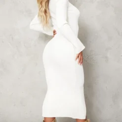 Robe Pull Noire En Maille Tricot à Dos Nu Noué Et Col Roulé