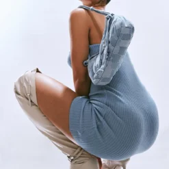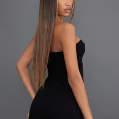 Robe Bustier Courte En Maille Tricot Côtelée Vieux Rose Foncé