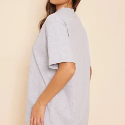 Robe T-shirt Gris Chiné à Manches Courtes Et Slogan Badge Athletic Sports