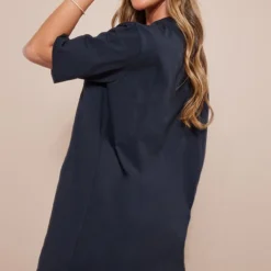 Robe T-shirt Noire Ă Manches Courtes Et Slogan Badge New York