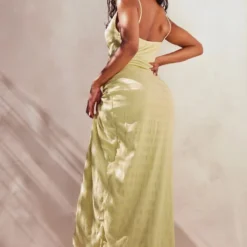 Robe Moulante Ivoire Transparente En Sequins Métallisés à Col Bénitier