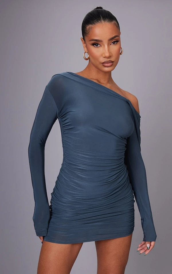 Canonissime cette robe asymétrique ! On adore sa couleur gris anthracite, sa coupe moulante qui vous met en valeur et ses fronces canon. Notre conseil mode ? La porter avec une paire de talons et quelques accessoires avant de rejoindre les copines sur le dancefloor. Vous êtes sensationnelle !
