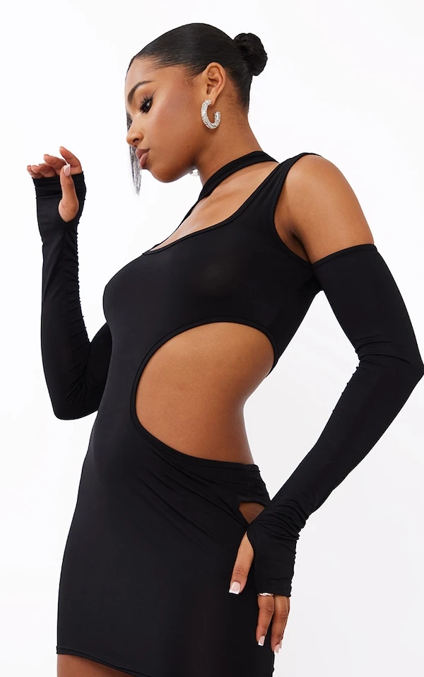 Bombe à l’approche dans cette robe ! On adore sa coupe moulante très flatteuse, ses côtés découpés et sa couleur noire. Pour faire un max d’effet en soirée, on vous conseille de la porter avec une paire de talons et des accessoires dorés. All eyes on you !