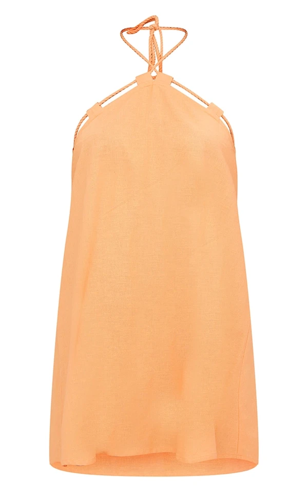 Robe babydoll mandarine effet lin à dos nu et lien style corde