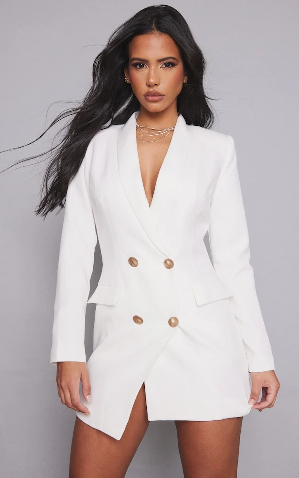 Love du look de cette robe blazer! On crush sur son coloris noir, ses boutons dorés et son design asymétrique. On enfile des talons dorés et quelques accessoires pour le total look de bombe du genre très classy.