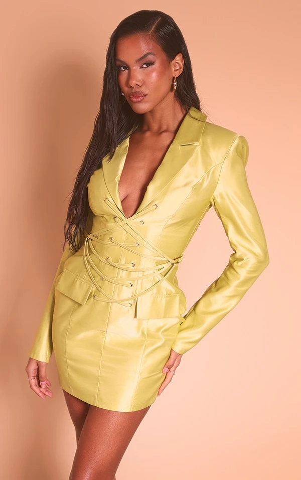 Robe blazer chartreuse à col et lacets devant