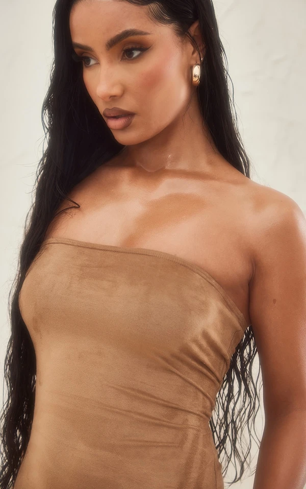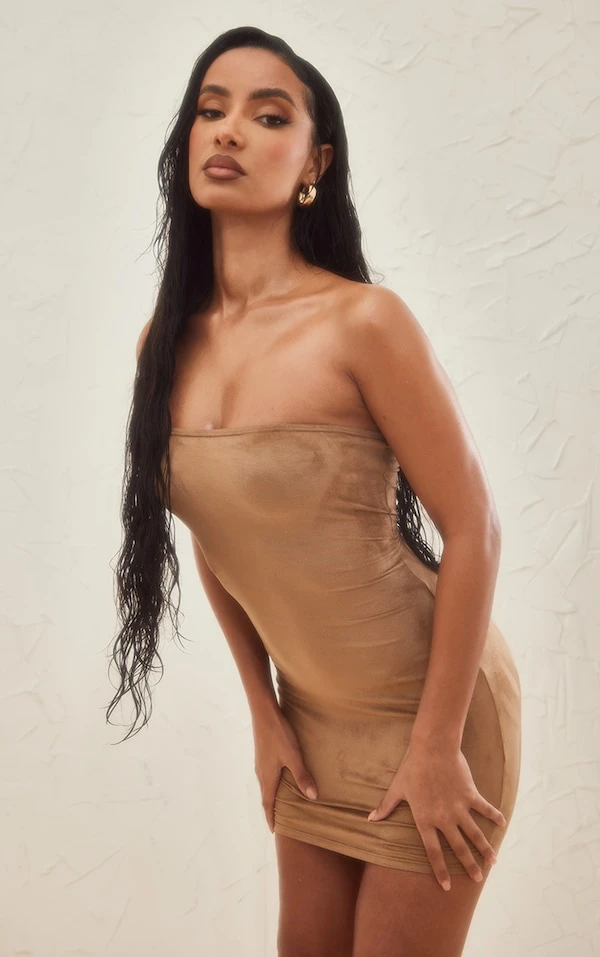 Pure bombe dans cette robe au style bustier ! Sa matière en suédine est super jolie et on adore son coloris camel tout doux. Elle se porte tout simplement avec une paire de talons à plateformes et un petit sac. Très stylée !