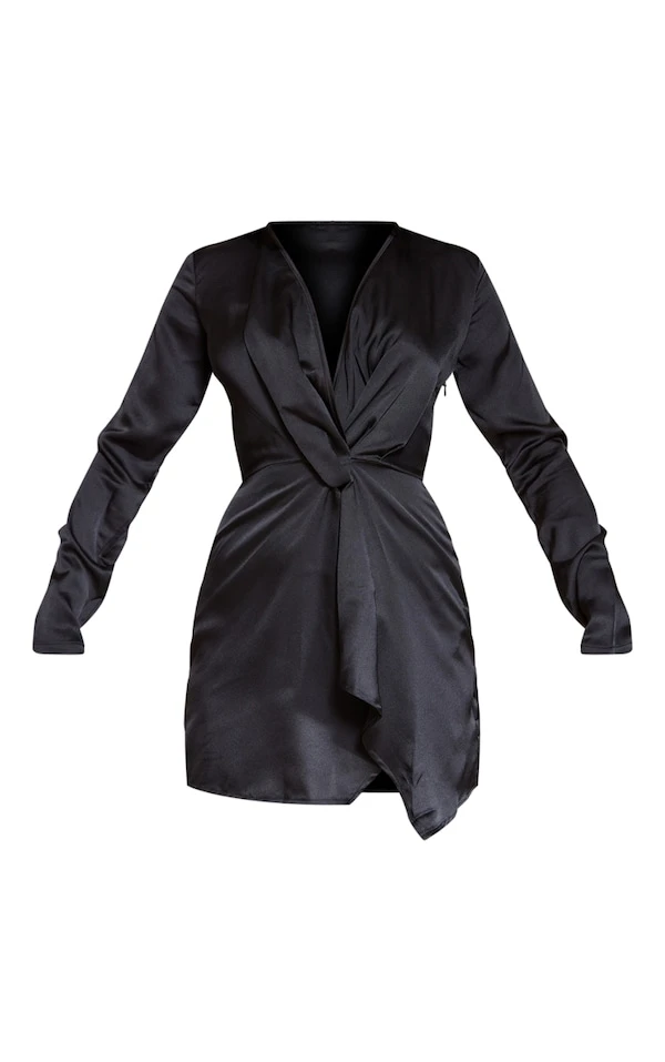 En tissu soyeux sensuel, cette robe cache-cœur est parfaite pour toutes les occasions spéciales. En satin noir avec un décolleté plongeant flatteur, portez-la avec des talons à brides et des accessoires de caractère pour compléter votre look.