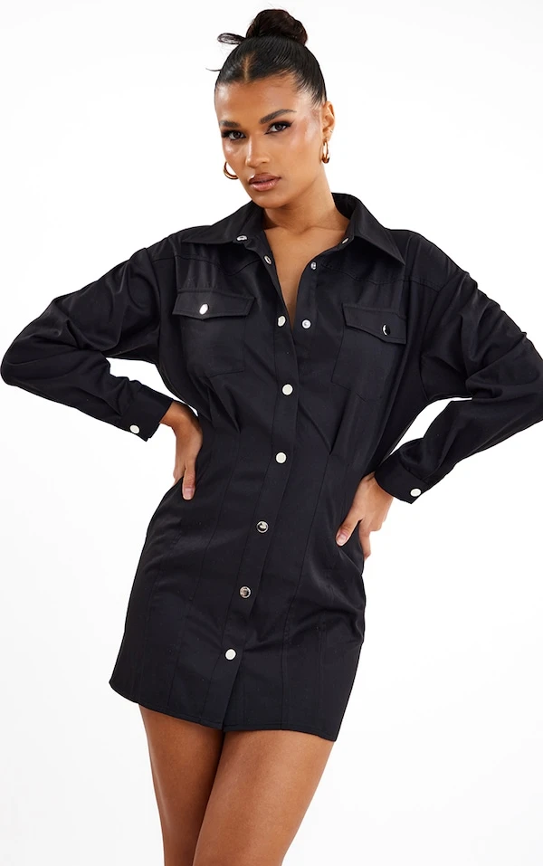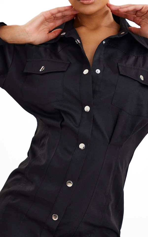 Robe chemise cargo noire à boutons-pression et taille ajustée