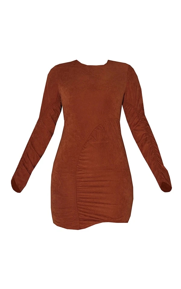 Clairement à shopper cette robe couleur chocolat. On adore son design froncé, son col ras et son design à porter avec une paire de bottes. Gorgeous !