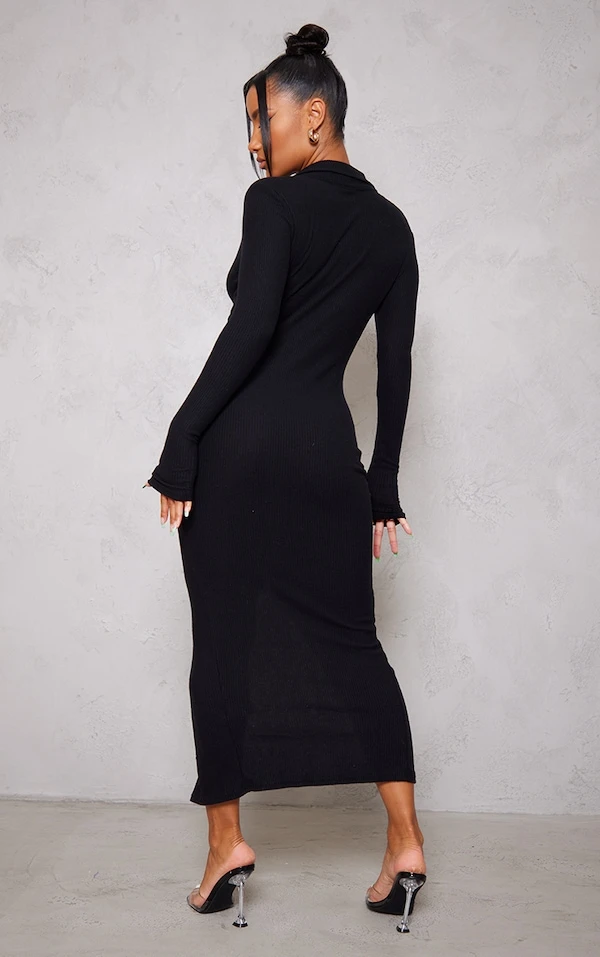 Vous avez toujours besoin d’une robe noire ! Avec sa coupe longue et sa matière côtelée et ses fronces, cette robe se fait une place dans votre garde-robe sans problèmes. Plus qu’à enfiler des baskets pour un look très cool !