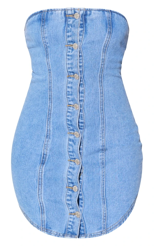 Robe courte en jean bleu vif à ourlet incurvé et boutons