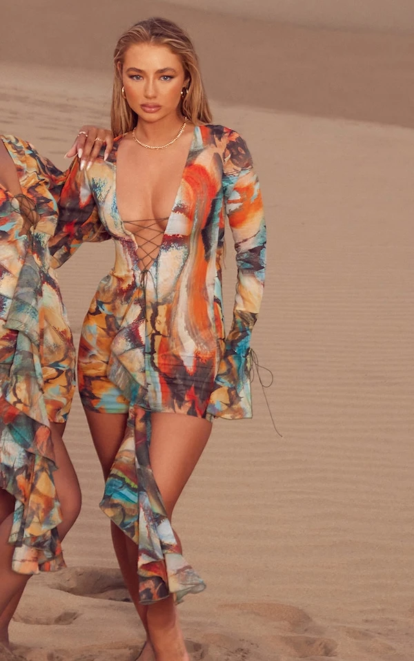 Trop belle, surtout dans cette robe de plage à la couleur bleue canon. On est sous le charme de sa matière en mousseline de soie, de ses papillons imprimés et de son design à lacets. Portée par-dessus le bikini assorti, cette robe de plage est parfaite !