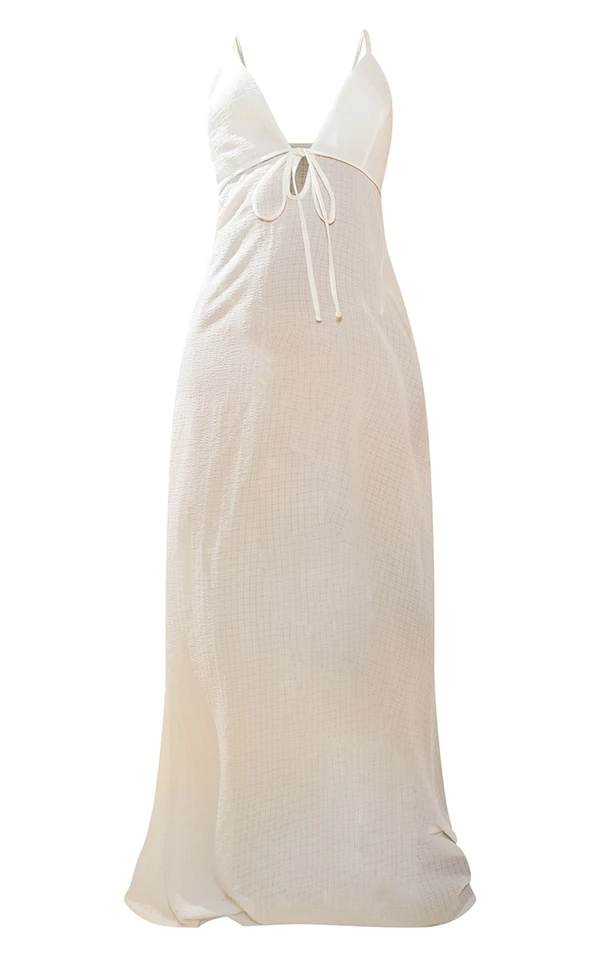 Jamais de pause pour le style, même en vacances, avec cette robe de plage sublimissime ! Avec sa couleur blanche, sa matière en crêpe et sa longueur renversante, on part sur de bonnes bases. On n’hésite pas à jouer sur les matières en l’associant avec un sac en raphia coloré et des tongs. Une VIP en vacances !