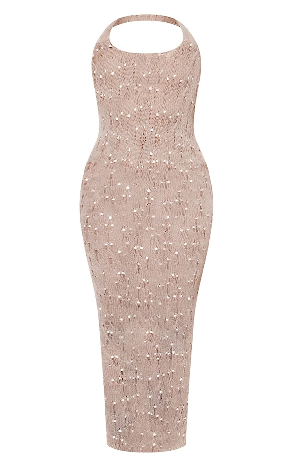 Trop belle dans cette robe de plage de couleur crème. Avec sa matière en maille tricot côtelée élimée et sa coupe longue, on la porte par-dessus un bikini coloré avec un collier dorée à chaînes superposées. Easy, le look summer !